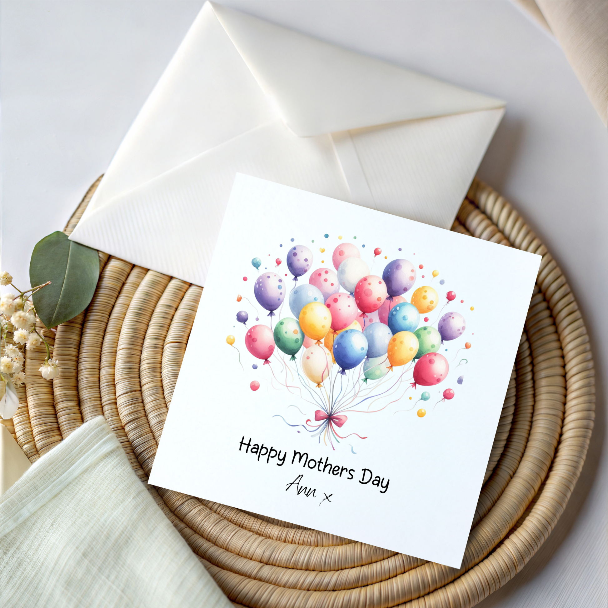 Personalised Mothers Day Card. Balloons